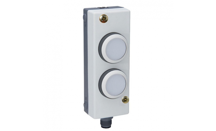 ASi Light Button Module, lighted (white) with 2 holes for screw mounting, ASi connection via M12 plug, 1 AB address, IP54