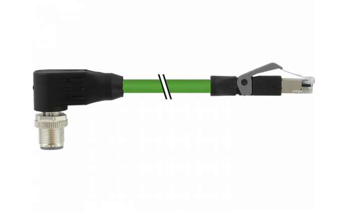 - M12, męski, kodowanie D, 4-biegunowy; PUR, 1000 cm, ekranowany; RJ45, męski, 4-biegunowy