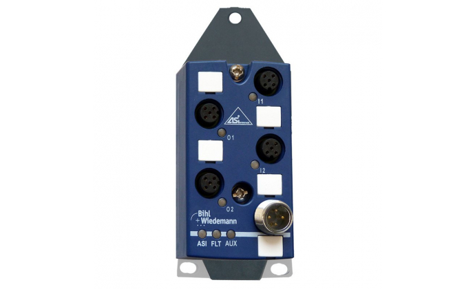 Moduł cyfrowy ASi I / O w IP67, z 4 gniazdami M12, 2 wejściami cyfrowymi, 2 wyjściami cyfrowymi, pojedynczym okablowaniem, napięciem wejściowym / zasilaniem czujnika z ASi, napięciem wyjściowym / zasilaniem z AUX, połączeniem peryferyjnym 4 x gniazdo M12, 5 biegunów, połączenie ASi przez M12, 1 AB slave